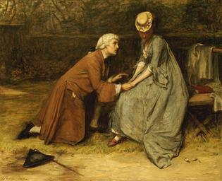 | Keywords: Proposal by John Pettie.jpg Artwork Creator John Pettie The Proposal 1869 Oil Canvas cm 47 6 57 8 Private Collection http //www artnet com/artists/john-pettie/the-proposal-PZqBXOezMoCiRRLG43A4vQ2 Victorian genre scene of young man and young woman wearing ca 1780s clothes; one-knee proposal http //www easyart com/canvas-prints/John-Pettie/The-Proposal 2C-1869-213814 html Other versions PD-old-100-1923 John Pettie Marriage proposals in paintings 1896 paintings Rococo revival paintings | ||||