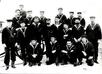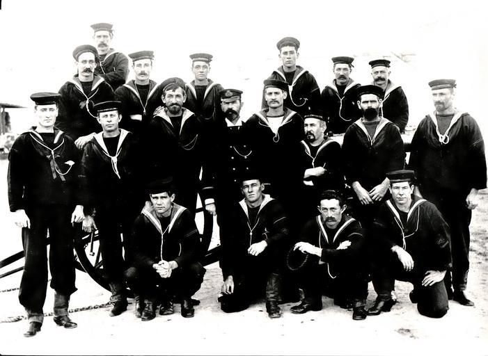 Keywords: Protector Gun Crew.jpg en Turner standing in the middle row second from left C 1899 Family Heirloom author 1899 PD-Australia