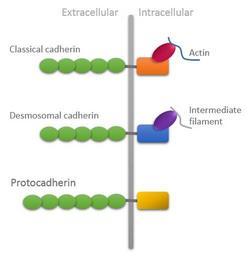 | Keywords: Protocadherins image2.png en Fig 2 “ General organization of different types of cadherins showing unique features of protocadherins Extracellular domain is longer and intracellular domain lack attachment with cytoskeleton pt 3 tipos diferentes de caderinas com as caracterÃsticas moleculares e estruturais Handmade TelmaGL 2014-02-27 Cc-zero Uncategorized 2014 February 27 |