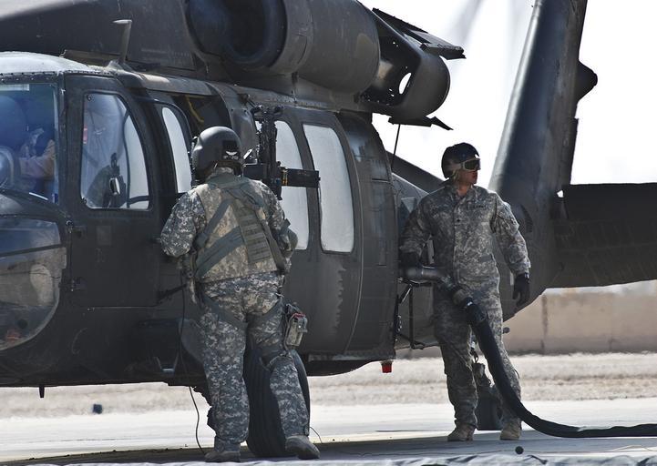 Keywords: Providers pump 1 million gallons of aviation fuel in less than 3 months DVIDS118314.jpg en Spc Christopher McGee petroleum specialist Company A 404th Aviation Regiment Combat Aviation Brigade 4th Infantry Division Multi-National Division - Baghdad refuels a UH-60 Black Hawk helicopter at Camp Taji's forward arming and refueling point Sept 26 2008 McGee's unit who is responsible for refueling and arming the entire brigade's aircraft have distributed more than one million gallons of aviation fuel in about 2 1/2 months McGee is a native of Wallis Texas 2008-09-26 Spc Jason Dangel https //www dvidshub net/image/118314 118314 2008-09-26 14 36 CAMP TAJI IQ PD-USGov UH-60 Black Hawk Camp Taji Images from DoD uploaded by Fæ |