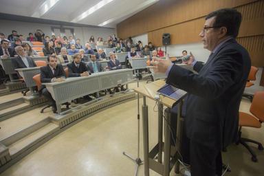| Keywords: indoor La Facultad de Ingeniería y Ciencias y la Escuela de Negocios, realizaron la presentación del proyecto CONICYT Anillo “Optimización a gran escala e incertidumbre: desafíos en planificación minera estratégica, un enfoque interdisciplinario” que agrupa a investigadores de distintas disciplinas y universidades: Universidad Adolfo Ibáñez, Universidad de Chile, Universidad Católica y Universidad Católica del Norte en torno al tema de la planificación minera estratégica. En el la oportunidad Manola Sánchez, decana Escuela de Negocios; y Alejandro Jadresic, decano Facultad de Ingeniería y Ciencias dieron la bienvenida a la ceremonia, en que destacaron los desafíos que supone este nuevo centro. Intervinieron además el subsecretario de Minería, Ignacio Moreno Fernández; el director Ejecutivo de CONICYT, Christian Nicolai; Joaquín Villarino, presidente Consejo Minero; José Pesce, vicepresidente de Gestión de Recursos mineros y Desarrollo de CODELCO. La presentación del Anillo fue realizada por Marcos Goycoolea, director del Proyecto Anillo "Desafíos en planificación minera estratégica: Un enfoque interdisciplinario". La Facultad de Ingeniería y Ciencias y la Escuela de Negocios, realizaron la presentación del proyecto CONICYT Anillo “Optimización a gran escala e incertidumbre: desafíos en planificación minera estratégica, un enfoque interdisciplinario” que agrupa a investigadores de distintas disciplinas y universidades: Universidad Adolfo Ibáñez, Universidad de Chile, Universidad Católica y Universidad Católica del Norte en torno al tema de la planificación minera estratégica. En el la oportunidad Manola Sánchez, decana Escuela de Negocios; y Alejandro Jadresic, decano Facultad de Ingeniería y Ciencias dieron la bienvenida a la ceremonia, en que destacaron los desafíos que supone este nuevo centro. Intervinieron además el subsecretario de Minería, Ignacio Moreno Fernández; el director Ejecutivo de CONICYT, Christian Nicolai; Joaquín Villarino, presidente Consejo Minero; José Pesce, vicepresidente de Gestión de Recursos mineros y Desarrollo de CODELCO. La presentación del Anillo fue realizada por Marcos Goycoolea, director del Proyecto Anillo "Desafíos en planificación minera estratégica: Un enfoque interdisciplinario". |