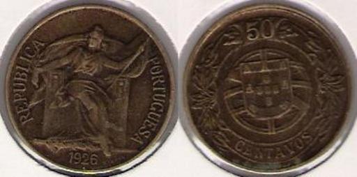 Keywords: PRT007.JPG Portugal 50 centavos 1926 Coins of Portugal 2006-09-17 own assumed B25es