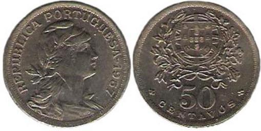 Keywords: PRT008.JPG Portugal 50 centavos 1957 Coins of Portugal Retouched images by User Waldir Allegories of the Portuguese Republic 2006-09-17 own assumed B25es