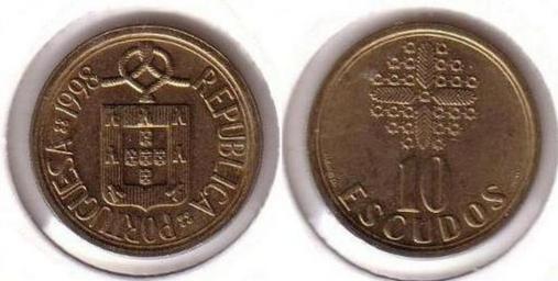 Keywords: PRT-10e2.jpg es 10 escudos Banco de Portugal coin Trabajo propio photograph Impresa Nacional - Casa da Moeda coin Mvllez photograph 1998 Coins of Portugal