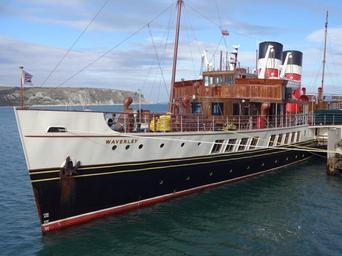 | Keywords: ship vehicle outdoor boat PS Waverley is the last seagoing passenger-carrying paddle steamer in the world. Built in 1946, she sailed from Craigendoran on the Firth of Clyde to Arrochar on Loch Long until 1973. Bought by the Paddle Steamer Preservation Society (PSPS), she has been restored to her 1947 appearance and now operates passenger excursions around the British coast. PS Waverley is the last seagoing passenger-carrying paddle steamer in the world. Built in 1946, she sailed from Craigendoran on the Firth of Clyde to Arrochar on Loch Long until 1973. Bought by the Paddle Steamer Preservation Society (PSPS), she has been restored to her 1947 appearance and now operates passenger excursions around the British coast. |