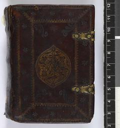 | Keywords: Psalter and Canticles -2nd half of the 12th century - Upper cover (Add MS 40753).jpg Style Centrepiece; Caption Upper cover; Colour Brown; Edge Unspecified exhibition history Decorative Technique Tooled in gold; Cover Material Goatskin includes morocco turkey etc 18th century of wooden boards covered with dark red gilt-tooled leather In the centre of each side is an oval gilt-stamped panel of floral design like that in Add MS 40754 There are remains of metal clasps Eastern Mediterranean Likely Palestine or Cyprus given the script Canart 1981 Two clasps catching on to the upper cover object history Text 13c; Unspecified; Unspecified object type Cc-zero place of creation Binding Eastern Mediterranean place of discovery Unspecified British Library image http //www bl uk/catalogues/bookbindings/LargeImage aspx RecordId 020-000019490 ImageId ImageId 57740 Copyright BL Psalter and Canticles 2nd half of the 12th century Uploaded with GWToolset Psalter and Canticles 2nd half of the 12th century - Upper cover Add MS 40753 http //www webarchive org uk/bldatasets/bindings/add_ms_40753_fblefr jpg Bookbinding 18th-century bookbinding British Library Bookbindings Taken with Phase One IQ140 |