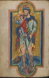 Keywords: Psalterium Feriatum Cod Don 309 024.jpg Bild aus Psalterium Feriatum Hildesheim bald nach 1235 Württembergische Landesbibliothek Stuttgart Cod Don 309 http //digital wlb-stuttgart de/purl/bsz35289279X after 1235 anonymous PD-old-100 Psalterium Feriatum Cod Don 309 Miniatures of Saint Christopher