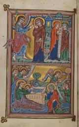 | Keywords: Psalterium Feriatum Cod Don 309 076.jpg Bild aus Psalterium Feriatum Hildesheim bald nach 1235 Württembergische Landesbibliothek Stuttgart Cod Don 309 http //digital wlb-stuttgart de/purl/bsz35289279X after 1235 anonymous PD-old-100 Psalterium Feriatum Cod Don 309 Miniatures of annunciation Medieval miniatures of Visitation Miniatures of the nativity of Jesus Christ | ||||