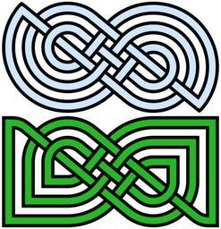 | Keywords: Pseudo-Celtic 13crossing knot.svg Quasi-Celtic-looking ornamental/decorative knot with 13 crossings At top rounded form; at bottom rectangular form Generated from versions of the following two vector PostScript source code programs <pre> 300 396 translate 5 5 rotate 1 setlinejoin /x 5000 sqrt def/y x 2 div def -1 5 x mul y 150 135 315 arc 1 5 x mul y neg 50 135 225 arcn -1 5 x mul y 50 45 315 arc 1 5 x mul y neg 150 135 315 arcn -1 5 x mul y 100 45 315 arc 1 5 x mul y neg 100 135 225 arcn closepath gsave 100 3 div setlinewidth stroke grestore 50 3 div setlinewidth 8 9 1 setrgbcolor stroke 0 setlinejoin 0 setgray 100 3 div setlinewidth /A -16 16 moveto 16 -16 lineto stroke def A gsave 0 x translate A grestore gsave 0 x neg translate A grestore gsave x 0 translate A grestore gsave x neg 0 translate A grestore gsave -2 5 x mul 1 5 x mul translate A grestore gsave 2 5 x mul -1 5 x mul translate A grestore /A 16 16 moveto -16 -16 lineto stroke def gsave y y neg translate A grestore gsave y neg y translate A grestore -1 5 x mul y 50 92 178 arc stroke 1 5 x mul y neg 50 272 358 arc stroke -1 5 x mul y 100 302 315 arc 12 12 rlineto stroke 1 5 x mul y neg 100 122 135 arc -12 -12 rlineto stroke 50 3 div setlinewidth 8 9 1 setrgbcolor /A -17 17 moveto 17 -17 lineto stroke def A gsave 0 x translate A grestore gsave 0 x neg translate A grestore gsave x 0 translate A grestore gsave x neg 0 translate A grestore gsave -2 5 x mul 1 5 x mul translate A grestore gsave 2 5 x mul -1 5 x mul translate A grestore /A 17 17 moveto -17 -17 lineto stroke def gsave y y neg translate A grestore gsave y neg y translate A grestore -1 5 x mul y 50 90 180 arc stroke 1 5 x mul y neg 50 270 360 arc stroke -1 5 x mul y 100 300 315 arc 13 13 rlineto stroke 1 5 x mul y neg 100 120 135 arc -13 -13 rlineto stroke showpage EOF</pre> <pre> 300 396 translate 5 5 rotate /x 5000 sqrt def/y x 2 div def -241 96 1278 52 44 45 84 5 arc -245 791 149 271 lineto -269 752 -99 577 lineto -1 5 x mul y 150 264 5 315 arc 1 5 x mul y neg 50 135 84 5 arcn 160 628 9 6221 lineto 1 5 x mul y neg 50 354 5 225 arcn -1 5 x mul y 50 45 174 5 arc -160 628 -9 6221 lineto -1 5 x mul y 50 264 5 315 arc 1 5 x mul y neg 150 135 84 5 arcn 269 752 99 577 lineto 245 791 -149 271 lineto 241 -96 1278 52 44 264 5 225 arcn -1 5 x mul y 100 45 174 5 arc -215 19 -54 5997 lineto -1 5 x mul y 100 264 5 315 arc 1 5 x mul y neg 100 135 84 5 arcn 215 19 54 5997 lineto 1 5 x mul y neg 100 354 5 225 arcn closepath gsave 100 3 div setlinewidth stroke grestore 50 3 div setlinewidth 133 733 133 setrgbcolor stroke 0 setlinejoin 0 setgray 100 3 div setlinewidth /A -16 16 moveto 16 -16 lineto stroke def A gsave 0 x translate A grestore gsave 0 x neg translate A grestore gsave x 0 translate A grestore gsave x neg 0 translate A grestore gsave -2 5 x mul 1 5 x mul translate A grestore gsave 2 5 x mul -1 5 x mul translate A grestore /A 16 16 moveto -16 -16 lineto stroke def gsave y y neg translate A grestore gsave y neg y translate A grestore -1 5 x mul y 50 92 178 arc stroke 1 5 x mul y neg 50 272 358 arc stroke -1 5 x mul y 100 302 315 arc 12 12 rlineto stroke 1 5 x mul y neg 100 122 135 arc -12 -12 rlineto stroke 50 3 div setlinewidth 133 733 133 setrgbcolor /A -17 17 moveto 17 -17 lineto stroke def A gsave 0 x translate A grestore gsave 0 x neg translate A grestore gsave x 0 translate A grestore gsave x neg 0 translate A grestore gsave -2 5 x mul 1 5 x mul translate A grestore gsave 2 5 x mul -1 5 x mul translate A grestore /A 17 17 moveto -17 -17 lineto stroke def gsave y y neg translate A grestore gsave y neg y translate A grestore -1 5 x mul y 50 90 180 arc stroke 1 5 x mul y neg 50 270 360 arc stroke -1 5 x mul y 100 300 315 arc 13 13 rlineto stroke 1 5 x mul y neg 100 120 135 arc -13 -13 rlineto stroke showpage EOF</pre> 2011-2012 AnonMoos 13 crossing number knots and links Decorative knots Knots knot theory Images with PostScript source code Knots and links on transparent background Outline knots and links Celtic graphic ornaments |
