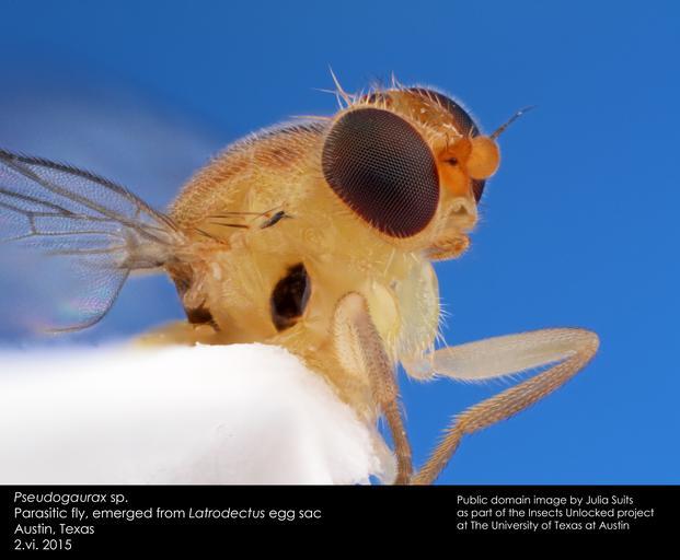 Public domain image. Univ. of Texas at Austin bug insect fly flies diptera compoundeye focusstack chloropidae insectphotography parasitoids pseudogaurax blackwidowparasites |