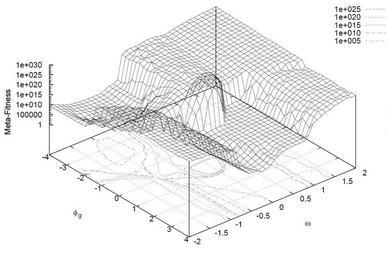 | Keywords: PSO Meta-Fitness Landscape (12 benchmark problems).JPG en Performance landscape showing how a simple Particle Swarm Optimization PSO variant performs in aggregate on several benchmark problems when varying two PSO parameters Lower meta-fitness values means better PSO performance Such a performance landscape is very time-consuming to compute especially for optimizers with several behavioural parameters but it can be searched efficiently using the simple meta-optimization approach by Pedersen implemented in http //www hvass-labs org/projects/swarmops/ SwarmOps to uncover PSO parameters with good performance Good choices would here seem to be in the region <math>\omega \in -0 6; 0</math> and <math>\phi_g \in 2; 4</math> and the region <math>\omega \in -1 25; -0 75</math> and <math>\phi_g \in -3 5; -2</math> Own Pedersen M E H http //www hvass-labs org/people/magnus/thesis/pedersen08thesis pdf Tuning Simplifying Heuristical Optimization PhD Thesis 2010 University of Southampton School of Engineering Sciences Computational Engineering and Design Group 2010-01-01 Evolutionary algorithms Optimization Benchmarks |