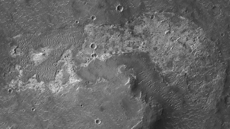 | Keywords: mars nasa jpl mro university of arizona universityofarizona science geology landscape space blackandwhite monochrome lunar texture outdoor black and white Light-Toned Material Southwest of Miyamoto Crater NASA/JPL/University of Arizona (5 km across, 270 km above the surface; www.uahirise.org/PSP_010051_1765) Light-Toned Material Southwest of Miyamoto Crater NASA/JPL/University of Arizona (5 km across, 270 km above the surface; www.uahirise.org/PSP_010051_1765) | ||||