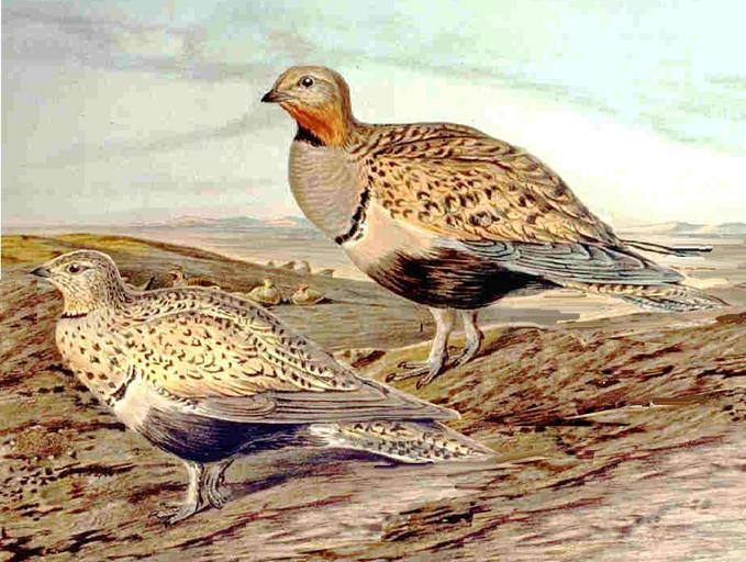 Keywords: Pterocles orientalis Naumann.jpg female Pterocles orientalis - Ganga unibande - Black-bellied Sandgrouse - Sandflughuhn<br/> male Pterocles orientalis - Ganga unibande - Black-bellied Sandgrouse - Sandflughuhn<br/> NAUMANN 1905 Johann Friedrich Naumann cropped by User Kersti Nebelsiek Pterocles sp jpg PD-old Pterocles orientalis |