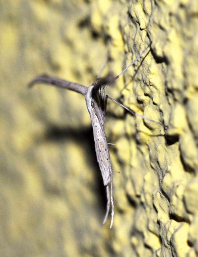 | Keywords: Pterophoridae-Goettingen03.jpg  Germany Göttingen residential area with gardens and forest nearby 07 Aug 2013 picture taken at night with flash at a yellow wall Photo F Welter-Schultes 2013-08-07 own assumed Kryp Cc-zero Unidentified Pterophoridae |