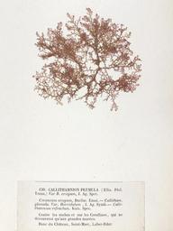 | Keywords: Pterothamnion crispum Crouan.jpg « Callithamnion plumula var crispum » Pterothamnion crispum « Callithamnion plumula var crispum » Pterothamnion crispum http //serres u-bourgogne fr/article php3 id_article 723 Alguier des frères Crouan Université de Bourgogne Pierre-Louis Crouan 1798-1871 Hippolyte-Marie Crouan 1802-1871 1852 PD-old Pterothamnion crispum Crouan brothers herbarium | ||||