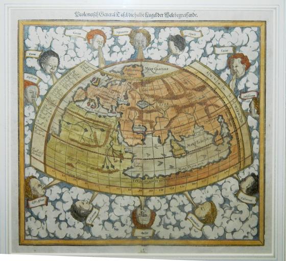 | Keywords: Ptolemeisch General Tafel III.jpg A Ptolemaic General Map depicting Eurasia in antiquity on Ptolemy's second projection from one of the printings of Sebastian Münster's editions of Ptolemy's Geography de Ptolemeisch General Tafel/die halbe kugel der Welt begreiffende Mid-16th century http //www olearyantiquesauctions com/auction1112b html O'Leary Antiques Auctions Ptolemy other versions <gallery> File Geographia universalis by Sebastian Munster jpg 1540 version File Ptolemaisch General Tafel JPG 1540 version File Typus Orbis Ptol Descriptus jpg c 1540 version File Cosmographia Sebastian Münster p 045 jpg 1545 version File Altera Generalis Tab Secundum Ptol jpg 1550 version File Ptolemeisch General Tafel jpg 1588 version File Ptolemeisch General Tafel II jpg c 1588 version </gallery> PD-old-70-1923 16th-century maps of the world Cosmographia Münster world Ptolemy's second projection 1588 Maps in Latin Maps in German |