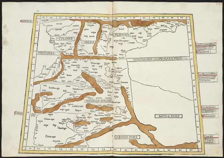 Keywords: Ptolemy 2nd cent 1.jpg en Published in Claudius Ptolemy Cosmographia Translated by Jacobus Angelis Edited by Nicolaus Germanus Ulm Lienhart Holle 1482 folio 113-114 el Συλλογή του Κλαύδιου Πτολεμαίου http //maps bpl org/id/m0612038 Συλλογή Κλαύδιου Πτολεμαίου 1482 PD-old-100 Ptolemaic Caucasus region Cosmographia Nicolai Germani impressa Ulmae anno 1482 |