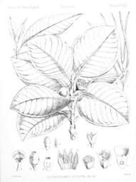 | Keywords: PTRS168 0655.png Scyphochlamys revoluta <small>Balf f </small> Pyrostria revoluta <small> Balf f Razafim Lantz B Bremer</small> twig of adult plant twig of young plant twig of very young plant involucral bract flower bud fully opened flower inside of corolla and androecium stamen gynoecium with part of calyx transverse section of ovary vertical section of ovary with part of calyx single unripe fruit in involucre vertical section of unripe fruit Philosophical Transactions of the Royal Society 168 An Account of the Petrological Botanical and Zoological Collections Made in Kerguelen's Land and Rodriguez During the Transit of Venus Expedition Carried Out by Order of Her Majesty's Government in the Years 1871-1875 Plate XXV 1879 Scan by the Internet Archive Author died more than 70 years ago - public domain PD-old Philosophical Transactions - Volume 168 Pyrostria revoluta Unripe fruits |