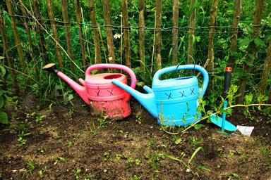 Keywords: can watering can wateringcan equipment gardening water container bucket spout care horticulture pink blue plastic public domain dedication publicdomaindedication mabelamber pixabay