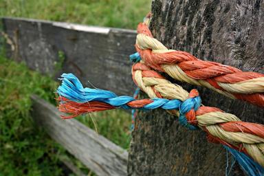 Keywords: knot rope tied twisted fastening security string post gate orange blue public domain dedication publicdomaindedication mabelamber pixabay