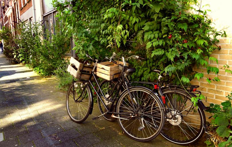 Keywords: bicycles city parked street wall urban setting urbansetting bike cycle transport bike transportbike public domain dedication publicdomaindedication mabelamber pixabay