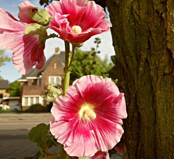 Keywords: flower hollyhock common hollyhock commonhollyhock bloom alcea tree urban setting urbansetting pink public domain dedication publicdomaindedication pixabay pexels mabelamber plant outdoor bouquet