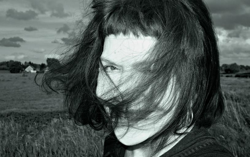Keywords: portrait face woman caucasian hair windblown people person female close up closeup smile public domain dedication publicdomaindedication pixabay pexels mabelamber monochrome outdoor