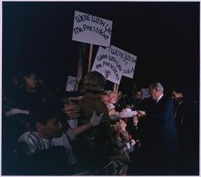 | Keywords: Public Reactions, Signs of support - NARA - 192606.tif Scope and content Location Langley Air Force Base Virginia Depicted President Lyndon B Johnson crowd General notes 192606 Local identifier President 1963-1969 Johnson White House Photograph Office 1963 - 1969 Creator Yoichi Okamoto Lyndon Baines Johnson Library NLLBJ 2313 Red River Street Austin TX 78705-5702 1967-11-11 Record group Collection LBJ-WHPO White House Photo Office Collection 11/22/1963 - 01/20/1969 Record group ARC 1153 Johnson White House Photographs compiled 11/22/1963 - 01/20/1969 Series ARC 192480 File unit File unit ARC Variant control numbers NAIL Control Number NLJ-WHPO-A-VN126<br /> Other Identifier C7410-16a yes Other versions NARA-cooperation PD-USGov Lyndon B Johnson in 1967 1111 Lyndon B Johnson shaking hands 19671111 Photographs by Yoichi Okamoto |