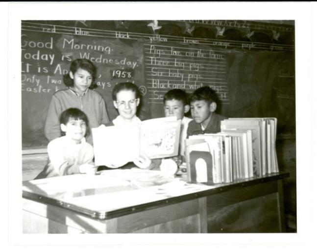 | Keywords: anna rose kiesow annarosekiesow school students mennonite board of mission voluntary service alternative service alaska calling lake mennoniteboardofmissionvoluntaryservicealternativeservicealaskacallinglake people groupshot Caption: Calling Lake, Alberta. Anna Rose Kiesow reading aloud to her pupils in the public school. Citation: Mennonite Board of Missions. Photographs. Calling Lake, Alberta Voluntary Service. 1956-1963. IV-10-7.2 Box 1 Folder 9 Photo 6. Mennonite Church USA Archives - Goshen. Goshen, Indiana. Caption: Calling Lake, Alberta. Anna Rose Kiesow reading aloud to her pupils in the public school. Citation: Mennonite Board of Missions. Photographs. Calling Lake, Alberta Voluntary Service. 1956-1963. IV-10-7.2 Box 1 Folder 9 Photo 6. Mennonite Church USA Archives - Goshen. Goshen, Indiana. |
