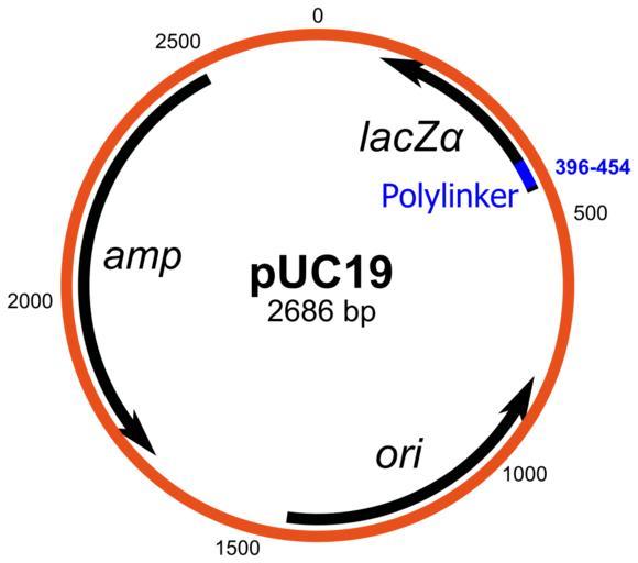 Keywords: PUC19.svg inkscape en scheme of pUC19 plasmid de Schema des Plasmides pUC19 own ; http //www neb com/nebecomm/tech_reference/restriction_enzymes/maps/pUC19_map pdf NEB Yikrazuul 2010-11-19 Mobile genetic elements