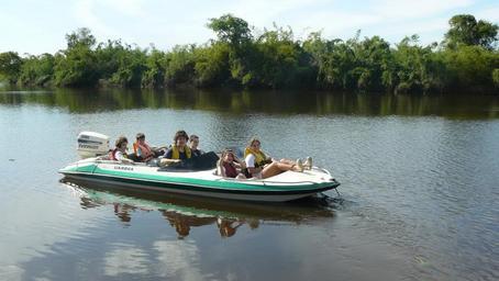 Keywords: Puerto Naranjahai Recorrido en lancha por el manduvira.jpg es Paseando en lancha en el rio Manduvirá a la altura del puerto Naranjahai own Hugo Diaz Lavigne 2009-07-14 Tourism in Paraguay 2009 in tourism