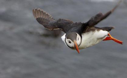 Keywords: puffin bird flying wing nature flying bird wild animal feather flight