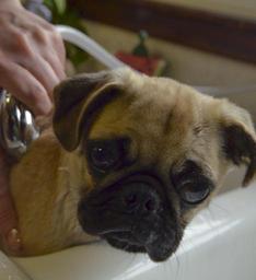 Keywords: pug bath puppy wash cute grooming care dog pet animal