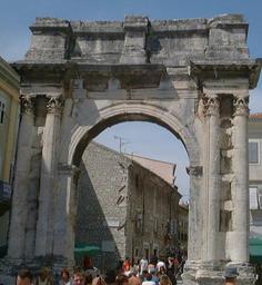 Keywords: Pula - porte d or.jpg The Ancient Roman Arch of the Sergii 1st century in Pula Croatia Self-made La Porte d'or à Pula en Croatie 2005-08-06 own assumed Sebb Source Own photo Arch of the Sergii Pula view from east