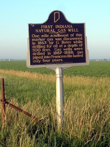 | Keywords: Pulaski County natural gas marker.png 40 57 46 8 N 86 53 30 W region US-IN_heading SW A historical marker in southwestern Pulaski County Indiana documenting the site of the state's first natural gas well Marker is located on the western side of U S Route 421 one and a half miles south of the town of Francesville Indiana Francesville It reads <blockquote> First Indiana Natural Gas Well<br /> One mile southwest of this marker gas was discovered in 1867 by G Bates while drilling for oil at a depth of 500 feet Gas wells were drilled in 1887-1888; gas piped into Francesville lasted only four years </blockquote> Own 2007-06-14 Huw Williams Huwmanbeing Files by User Huwmanbeing Historical markers in Indiana Natural gas Pulaski County Indiana |
