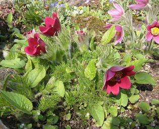Keywords: Pulsatilla vulgaris Carminea 3.jpg Pulsatilla_vulgaris_Carminea; Botanic Garden Vienna Austria Own 6 4 2008 picture and upload DHochmayr Pulsatilla cultivars