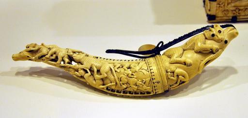 | Keywords: Pulverhorn makffm HSt65.jpg Pulverhorn; Indien Mogul-Hofkunst 17 Jh ; Elfenbein geschnitzt Stahl Bernstein; Museum für Angewandte Kunst Frankfurt am Main Inv Nr H St 65 erworben mit Mitteln der Adolf-und-Luisa-Haeuser-Stiftung Powder horn; India Mughal court 17th century; ivory steel amber; Museum für Angewandte Kunst Frankfurt am Main Inv Nr H St 65 acquired with means from the Adolf and Luisa Haeuser foundation own 2011-04 Photo User FA2010 Asian art in the Museum für Angewandte Kunst Frankfurt Indian gunpowder flasks 17th-century ivory Asiatic ivory carving Handicrafts of India Military equipment of the Mughal Empire |