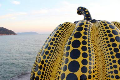 Keywords: pumpkin art sculpture island attraction landmark culture travel famous unesco japan naoshima yayoi kusama yellow dots japanese kusama