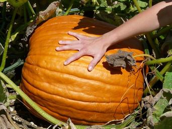 Keywords: pumpkin cucurbita maxima choose cucurbitaceae fruit cultivation breeding orange large huge hand comparison size comparison