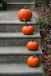 Keywords: pumpkin steps orange halloween fall autumn entry decorate residential home four 4 leaves house residence dwelling circle round family