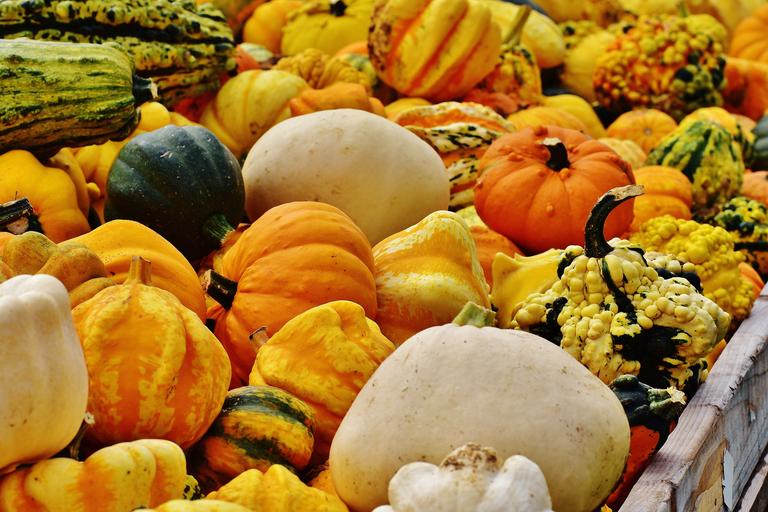 Keywords: pumpkins autumn autumn decoration harvest decorative squashes decoration orange yellow halloween garden color colorful seasonal pumpkin