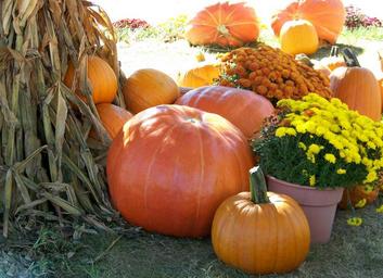Keywords: pumpkins flowers cornstalks autumn fall halloween