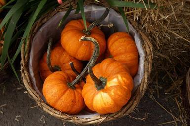 Keywords: pumpkin basket harvesting closeup decoration still life nobody thanksgiving autumn wicker horizontal leaf crop gardening vegetable arrangement vibrant color corn close up gourd holiday symbols