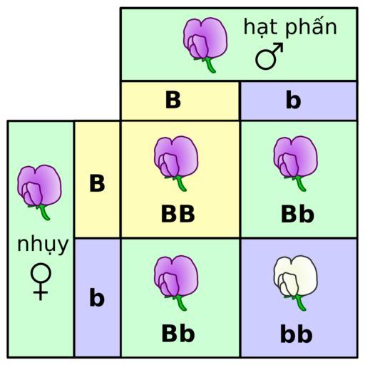 Keywords: Punnett square mendel flowers vi.svg Genetics diagram Punnett square describing one of Mendel's crosses between parents that are heterozygous for the purple/white color alleles Vietnamese translation of File Punnett square mendel flowers svg 2009-02-08 User DHN translation Madprime GFDL Cc-by-sa-3 0-migrated Cc-by-sa-2 5 2 0 1 0 Punnett squares |