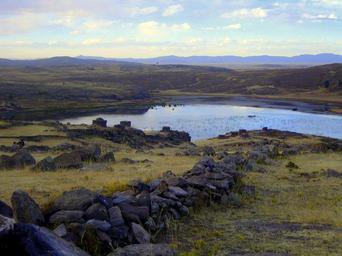 Keywords: peru outdoor landscape hill mountain mountainside river water riverbed cemitério Silustani cemitério Silustani