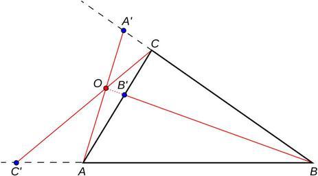 Keywords: Punto ceviano esterno.svg Punto ceviano esterno esterno al perimetro del triangolo Own 2008-02-14 Personline Ceva's theorem