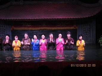 Keywords: Puppeteers of Thang Long puppet show..JPG en End of the Puppet Show and a farewell by the actors who control the puppets own Rudolph A Furtado Sunday 1-12-2013 Thang Long Water Puppet Theatre Cc-zero