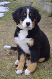 Keywords: puppy bernese mountain dog dog animal dear good white bib hof farmdog