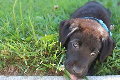 Keywords: puppy black labrador cute pet retriever adorable grass little playful playing
