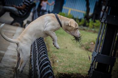 Keywords: puppy dog pet cute canine domestic animals fun park jump